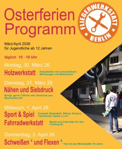 Die Fliegerwerkstatt bietet Erfahrungsraum mit handwerklichem Schwerpunkt auf 1400 Quadratmetern. Im letzten Schuljahr haben 400 junge Menschen aus über 16 Nationen ihre Projektideen umgesetzt – ganz ohne Zeit- und Leistungsdruck. Durch Eigenerfahrung und voller Begeisterung!
