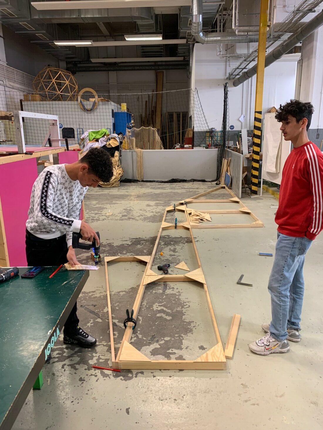 According to Donald’s designs, a model of the stage set was built on a scale of 1:10, from which the young people could take all the measurements and easily translate them into the real sizes.