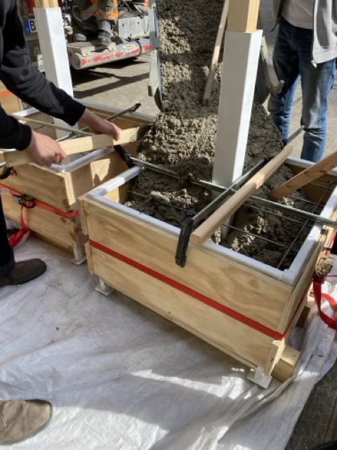 Jeder, der schon einmal auf dem ehemaligen Start- und Landeplatz war, weiß, wie windig es dort werden kann! Dementsprechend massiv haben die Jugendlichen die Betonsockel gebaut.