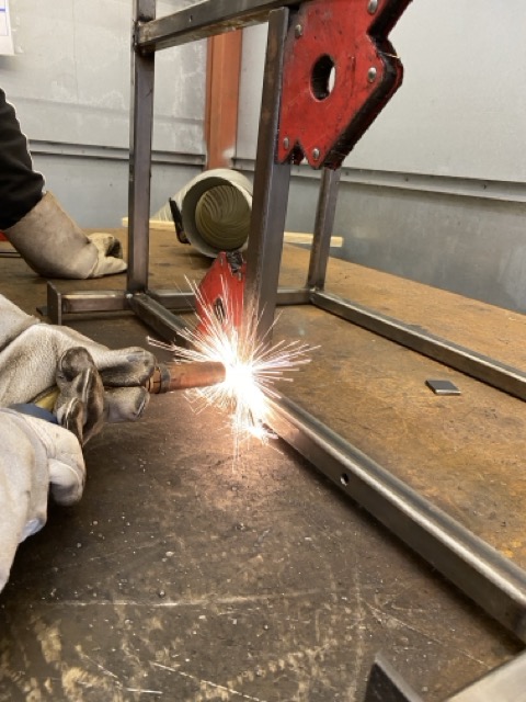 Eine schöne Schweißarbeit – und zum ersten Mal Betonarbeiten in der Fliegerwerkstatt.