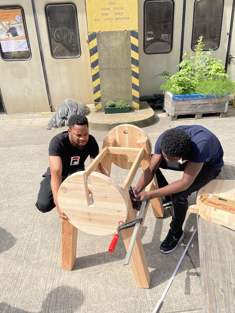 Für den Gemeinschaftsgarten Rübezahl e.V. haben die Jugendlichen der Fliegerwerkstatt zwei von ‚Meylenstein‘ entworfene Holzpferde gebaut.